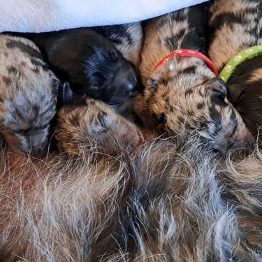 Es ist soweit! Seit dem 27.05.24 ist Stimmung im Haus! 7 Welpen, davon 6 Rüden und ein Mädchen haben das Licht der Welt erblickt.